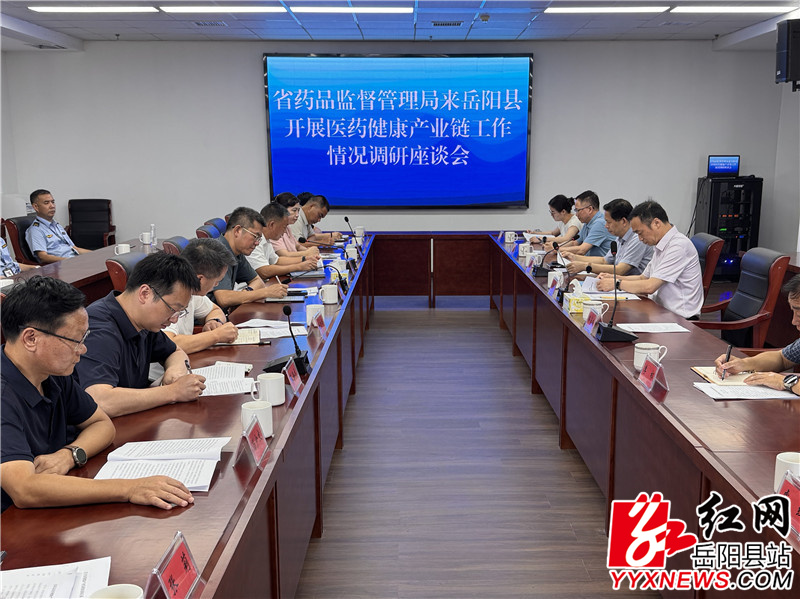 岳阳县融媒体中心8月23日讯(记者 尹宇豪)8月22日,省药品监督管理局党组书记、局长欧阳志刚率队来我县调研医药健康产业链工作,副县长续广宁及相关部门、企业负责人参加。