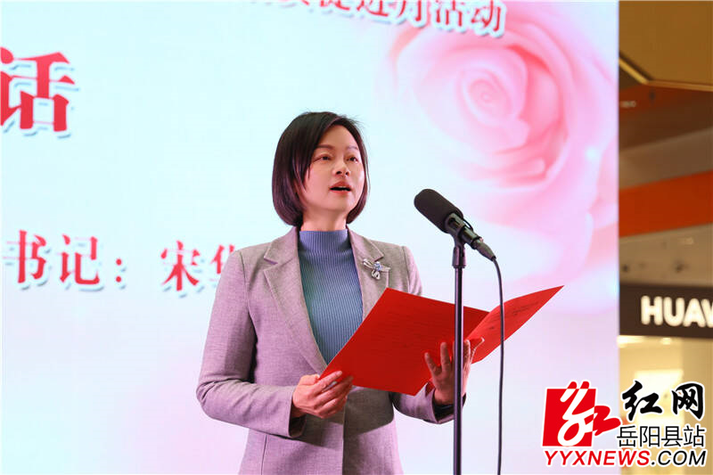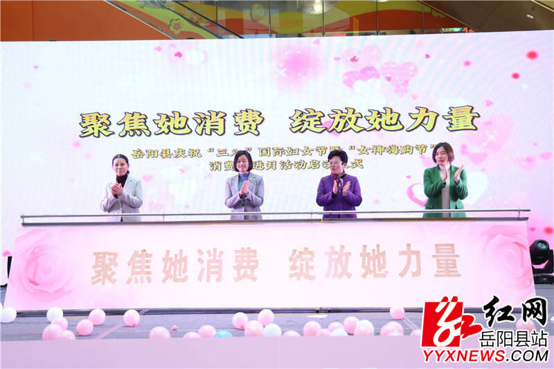 岳阳县融媒体中心3月7日讯(记者 罗爽 周昱君)3月7日,我县庆祝“三八”国际妇女节暨“女神嗨购节”消费促进月活动正式启动。县委副书记、政法委书记宋华,县人大常委会副主任彭碧芳,县政协副主席彭荣欣,县政协副主席、县商粮局局长敖珊出席。