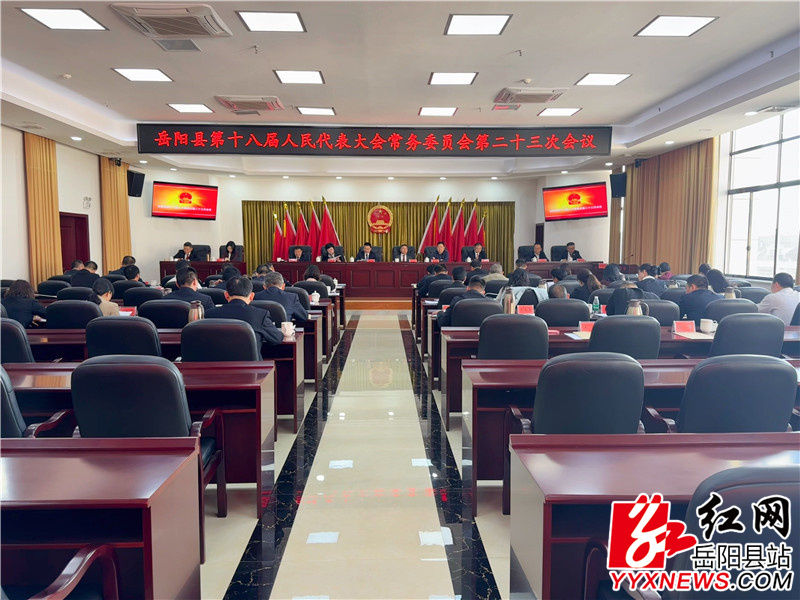 岳阳县融媒体中心3月26日讯(记者 周昱君)3月25日,县第十八届人大常委会第二十三次会议召开。县人大常委会主任、党组书记周峰,党组副书记、副主任王卫兵,副主任彭碧芳、胡秉阳、吴承棉、任三星出席。副县长李樱,县法院院长古田列席会议。会议由王卫兵主持。