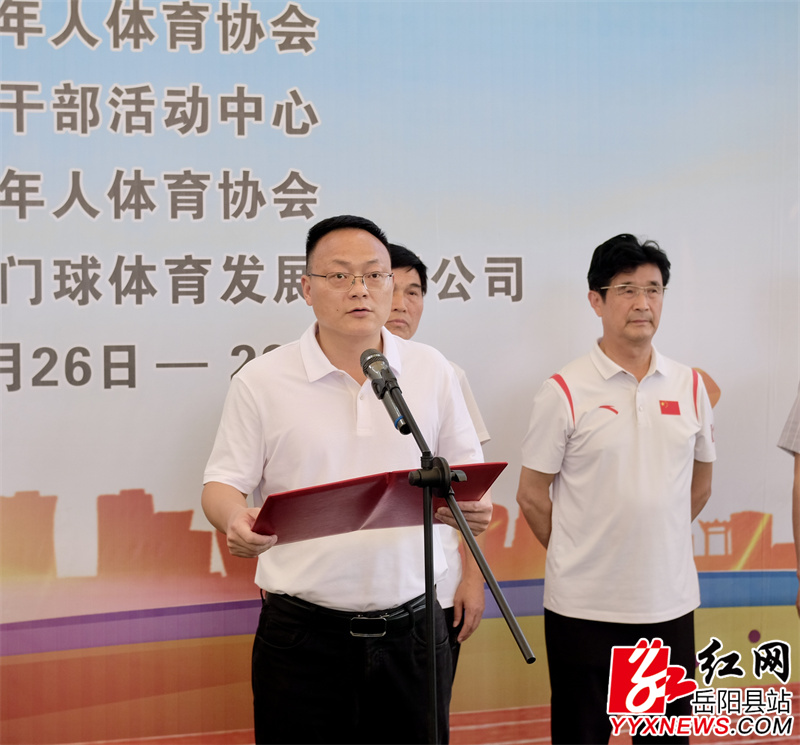 岳阳县融媒体中心5月26日讯(黄阳娇)5月26日下午,岳阳市老年人门球大赛在我县拉开帷幕。原岳阳市体育局党组书记、局长、市老体协名誉主席郭摩西,市老年人体育协会主席欧阳军等出席活动。县委常委、组织部部长方克君致辞,市县相关部门负责人共同见证赛事启幕。