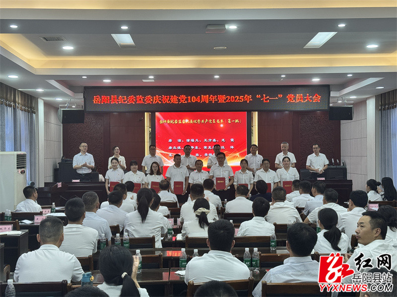 岳阳县融媒体中心7月1日讯(尹宇豪)7月1日,县纪委监委召开庆祝建党104周年暨“七一”党员大会。县委常委、纪委书记、监委主任邓旭旺出席会议并讲话,县纪委监委机关全体党员、县委巡察机构全体党员参加。