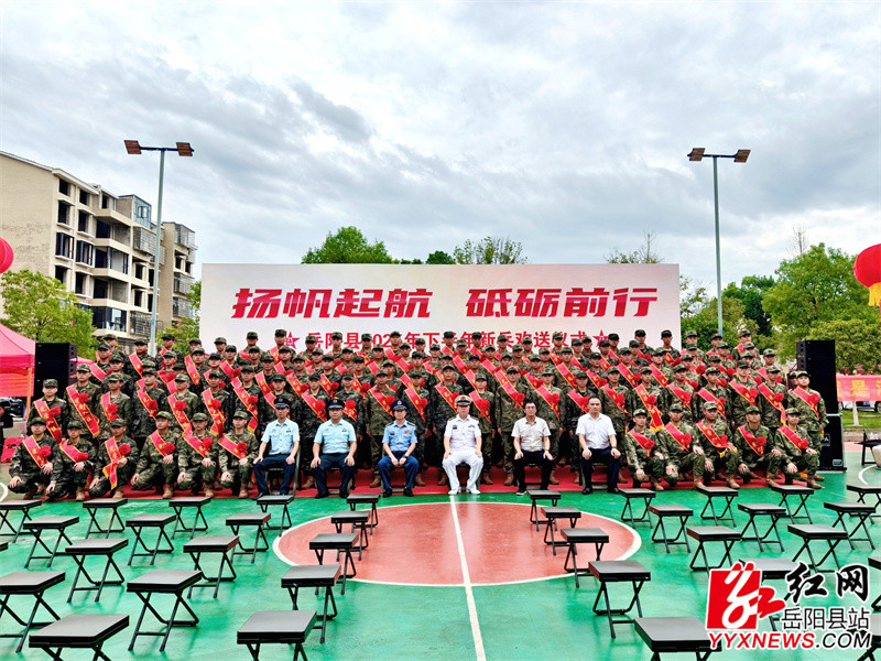 岳阳县融媒体中心9月12日讯(罗爽)青春热血踏军旅,铿锵誓言铸军魂。9月12日,我县举行“扬帆起航 砥砺前行”2025下半年新兵欢送仪式,集中欢送即将踏入军营、矢志献身国防、接力强军事业的新兵们。县委常委、县人武部部长、县征兵办公室主任张海波,县人武部政委楚海军,副县长张文毅出席,105名入伍新兵及其亲属参加。