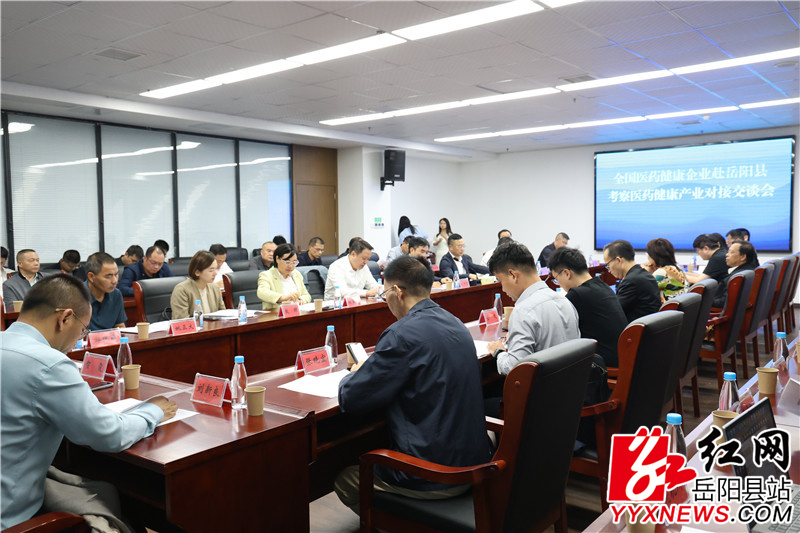 岳阳县融媒体中心10月14日讯(尹宇豪 周星亮)10月13日,全国医药健康企业考察团一行来我县调研县域医药健康产业发展现状,为产业协同发展与合作共赢搭建交流桥梁。副市长张世愚出席座谈会,县委副书记、县长吴光文主持会议。副县长刘炀,县政协副主席、县商粮局局长敖珊及相关部门和企业负责人参加。