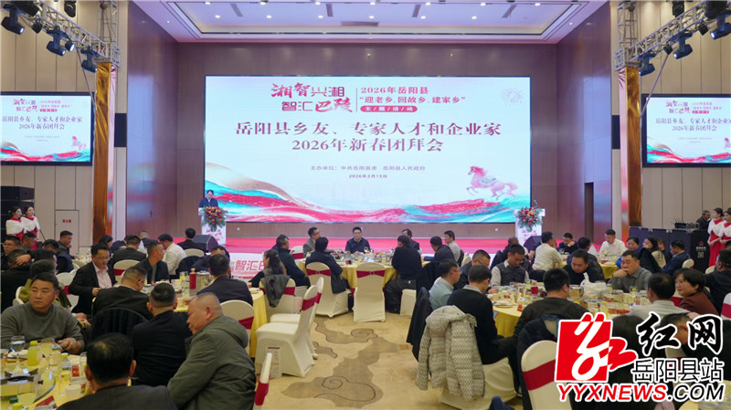岳阳县融媒体中心2月14日讯(罗爽 张帆)2月13日,我县举行2026年新春团拜会,360余名乡友、专家人才、企业家代表如约相聚在巴陵故土,共迎新春、畅叙乡情,共谋发展。县委书记肖湘晖出席并致辞。县委副书记、县长吴光文主持并通报全县经济社会发展情况。
