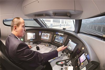 12月25日,动车司机在驾驶中。当天,一列试验动车在黔张常铁路线上运行。记者 郭立亮 摄