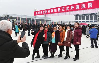 12月26日上午,黔张常铁路的正式开通运营,吸引了附近群众前来围观、拍照留念。记者 郭立亮 摄
