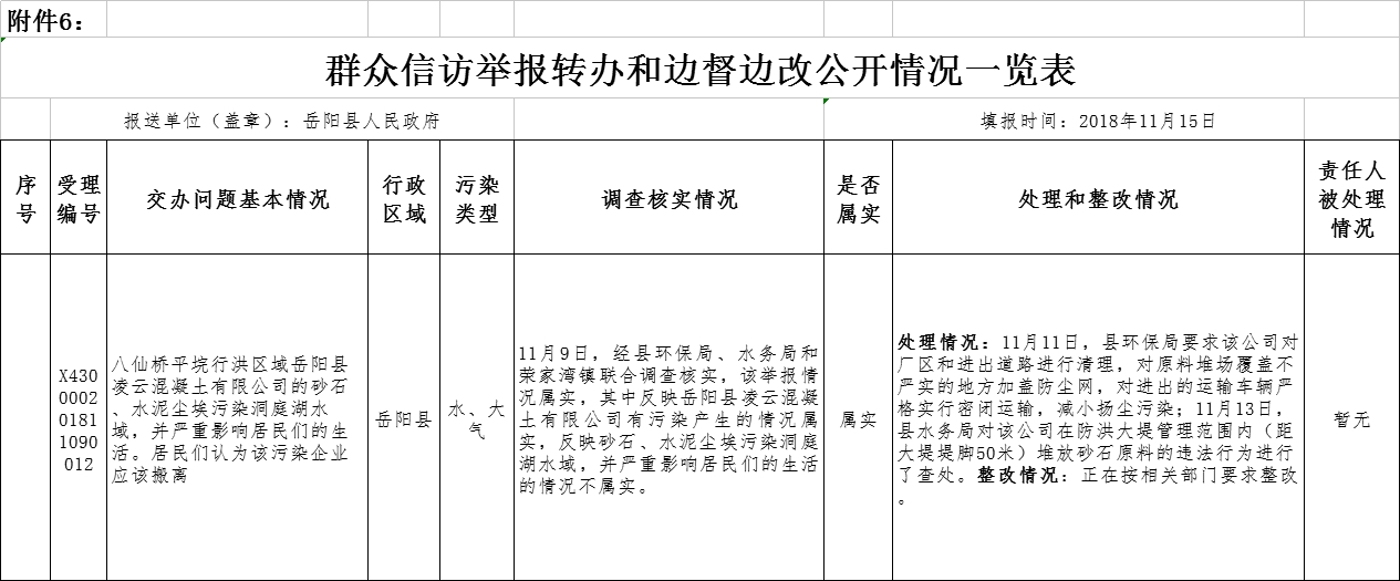 中央生态环境保护督察“回头看”群众信访举报转办和边督边改公开情况一览表 (2018年11月15日)