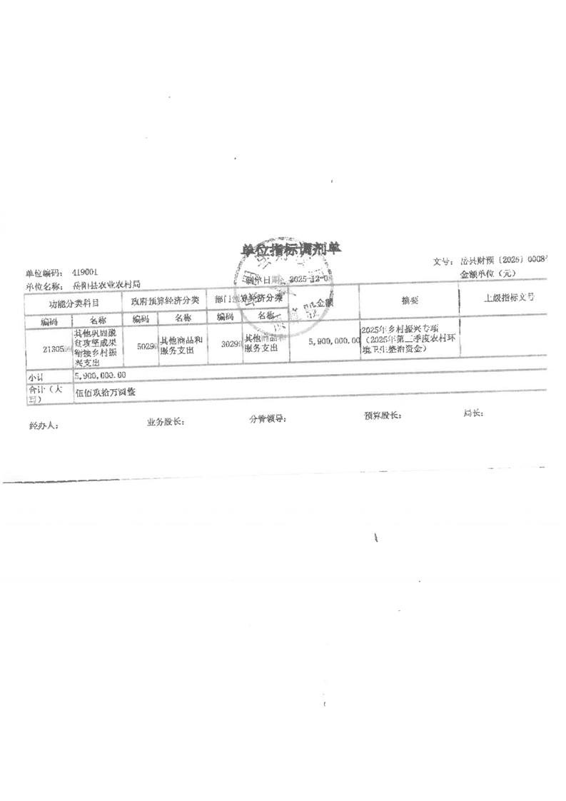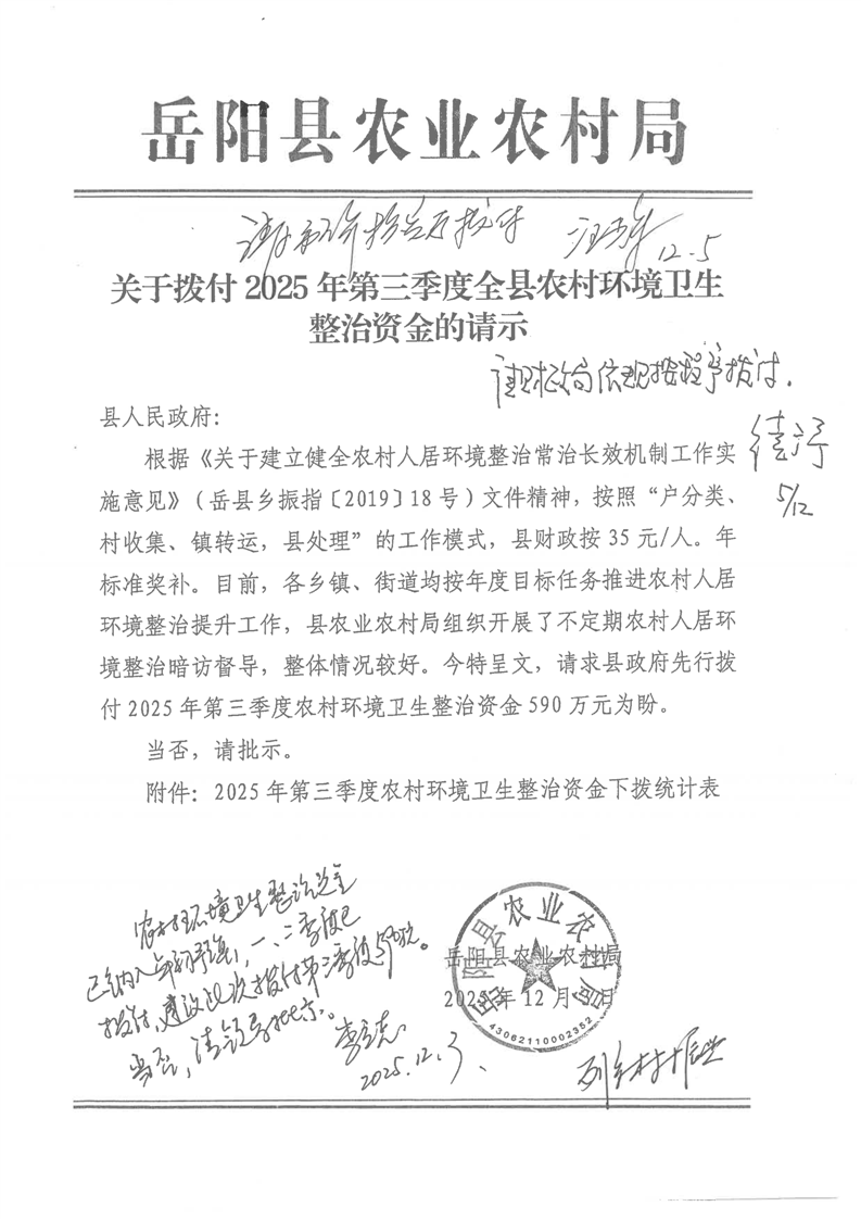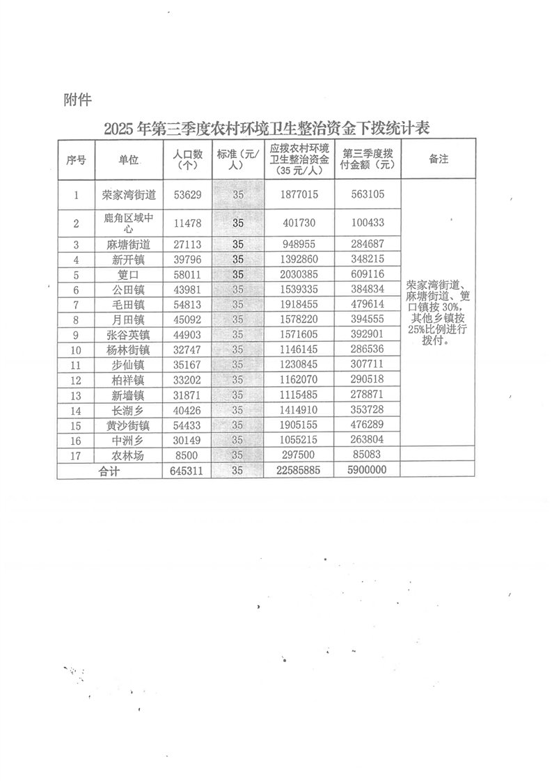 2025年第三季度农村环境卫生整治资金
