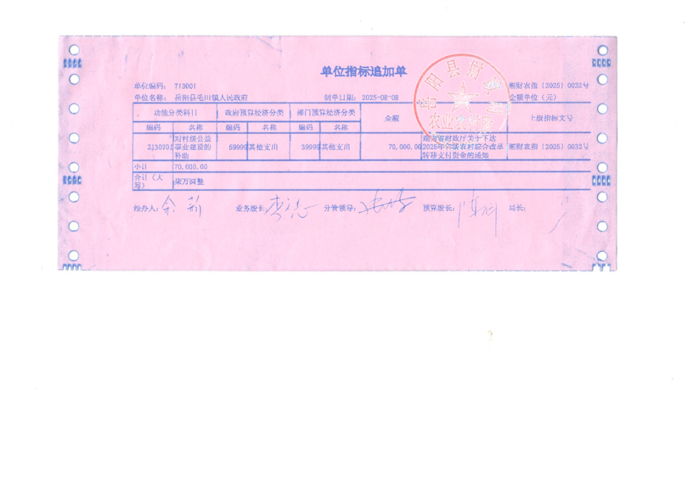 2025年省级农村综合改革转移支付资金拨单(湘财农指〔2025〕32号)