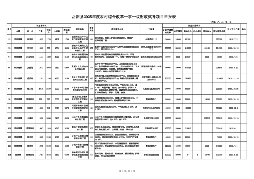 岳阳县2025年农村综全改革一事一议财政奖补项目申报表