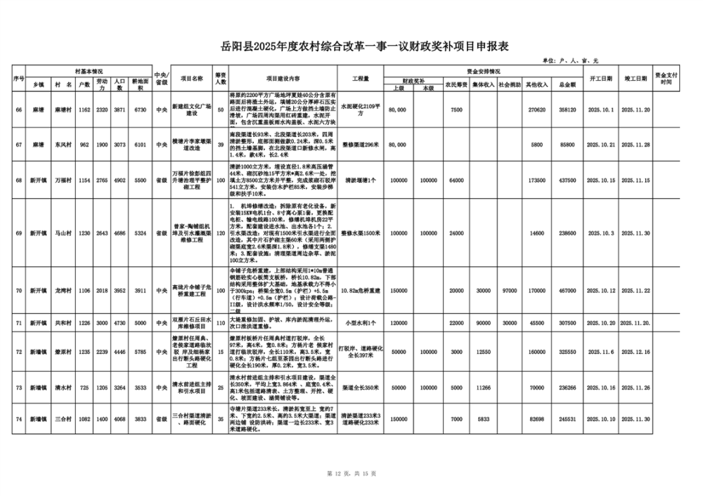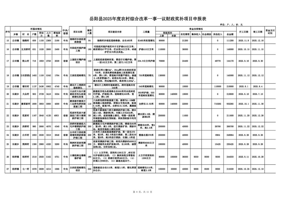 岳阳县2025年农村综全改革一事一议财政奖补项目台账