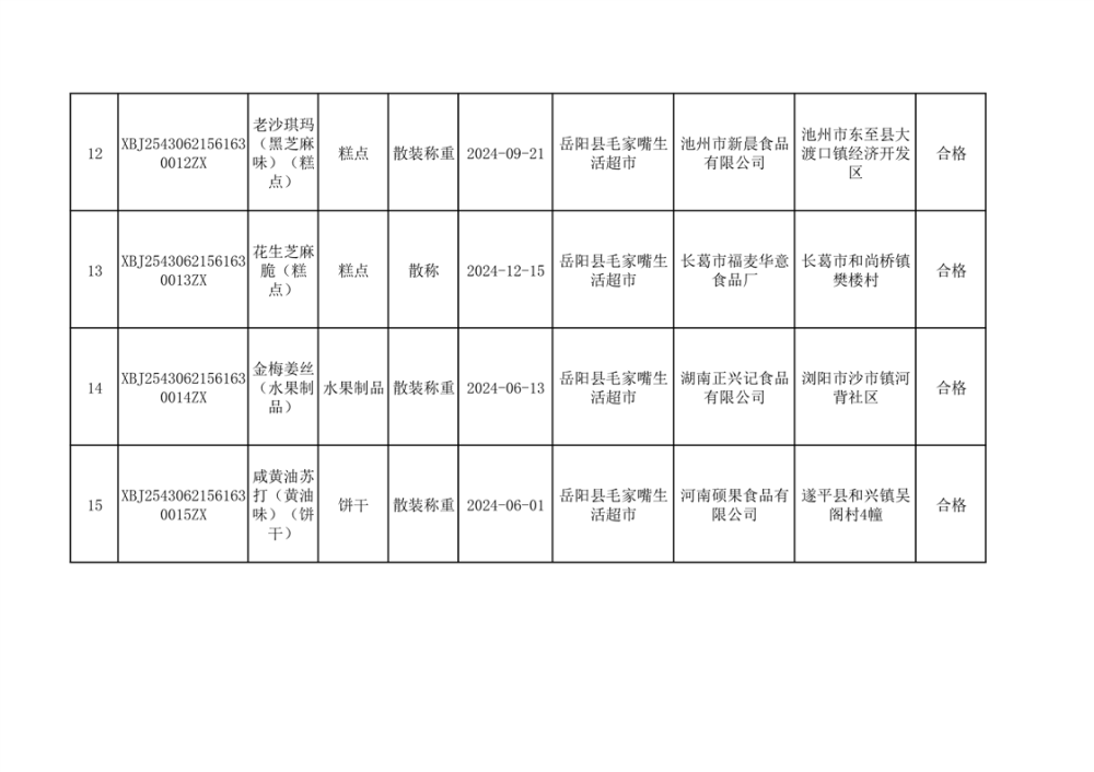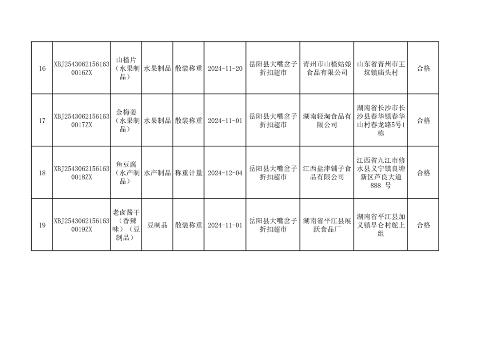 2025年岳阳县市场监督管理局“年关守护”专项抽检信息公示