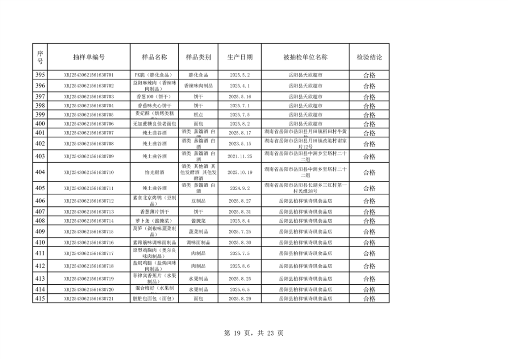 2025年12月18日抽检数据公示(合格494批次-检测中心)