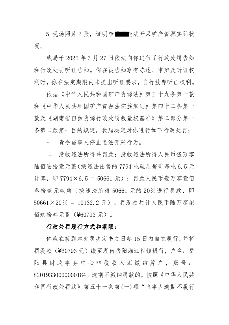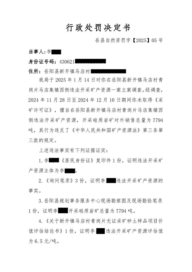 行政处罚决定书 岳县自然资罚字【2025】05 号