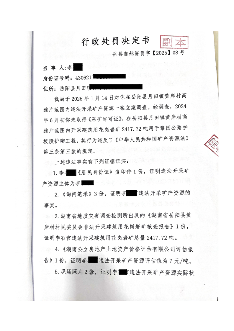 行政处罚决定书岳县自然资罚字(2025)8号