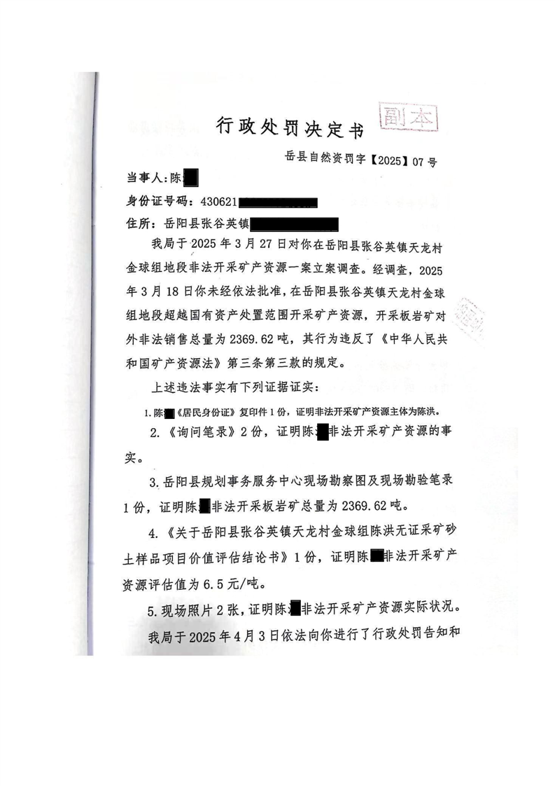 行政处罚决定书岳县自然资罚字(2025)7 号