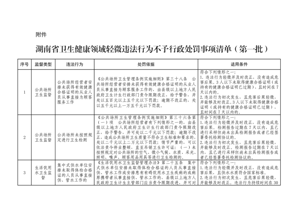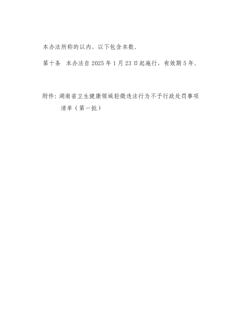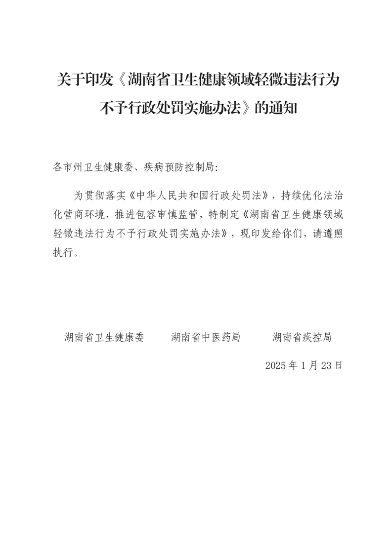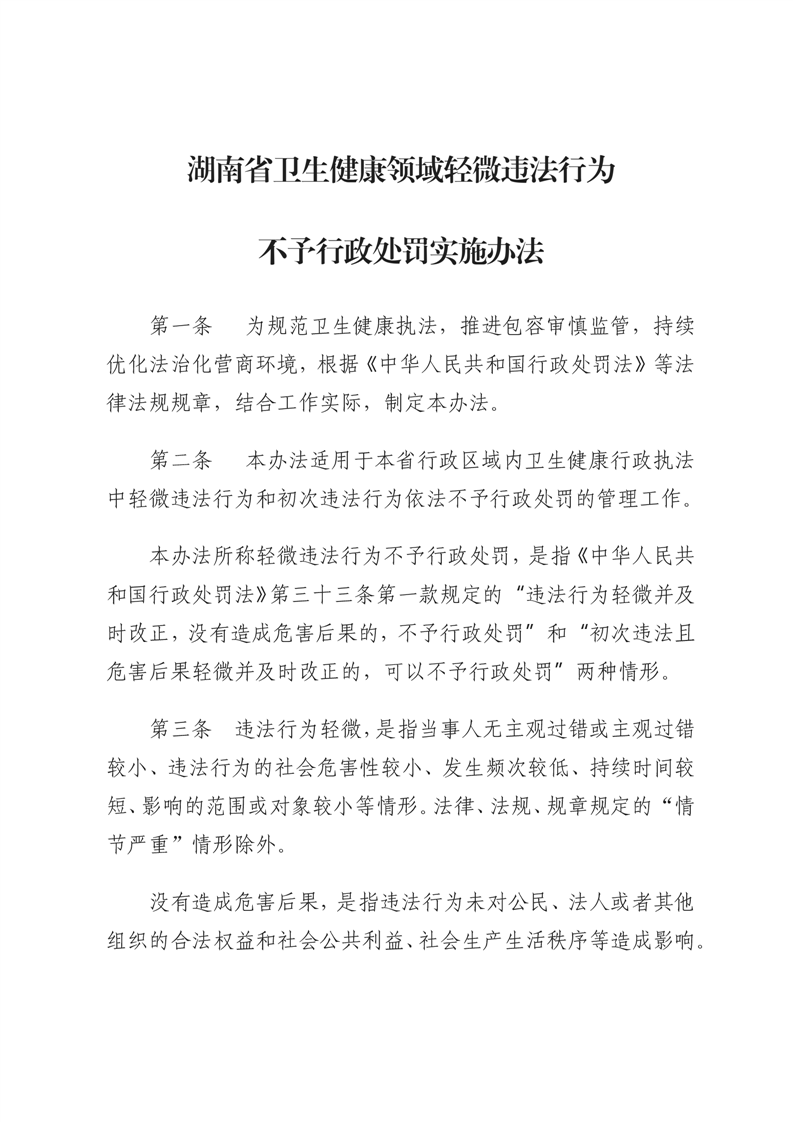 湖南省卫生健康领域轻微违法行为不予行政处罚实施办法