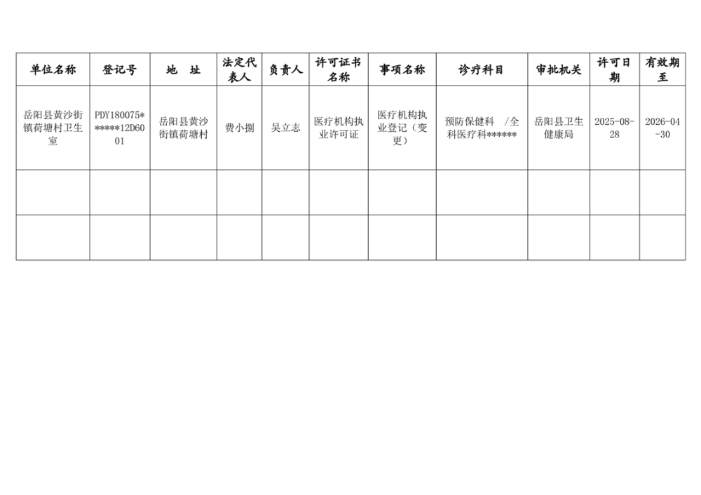 岳阳县卫生健康局2025年8月医疗机构执业许可公示