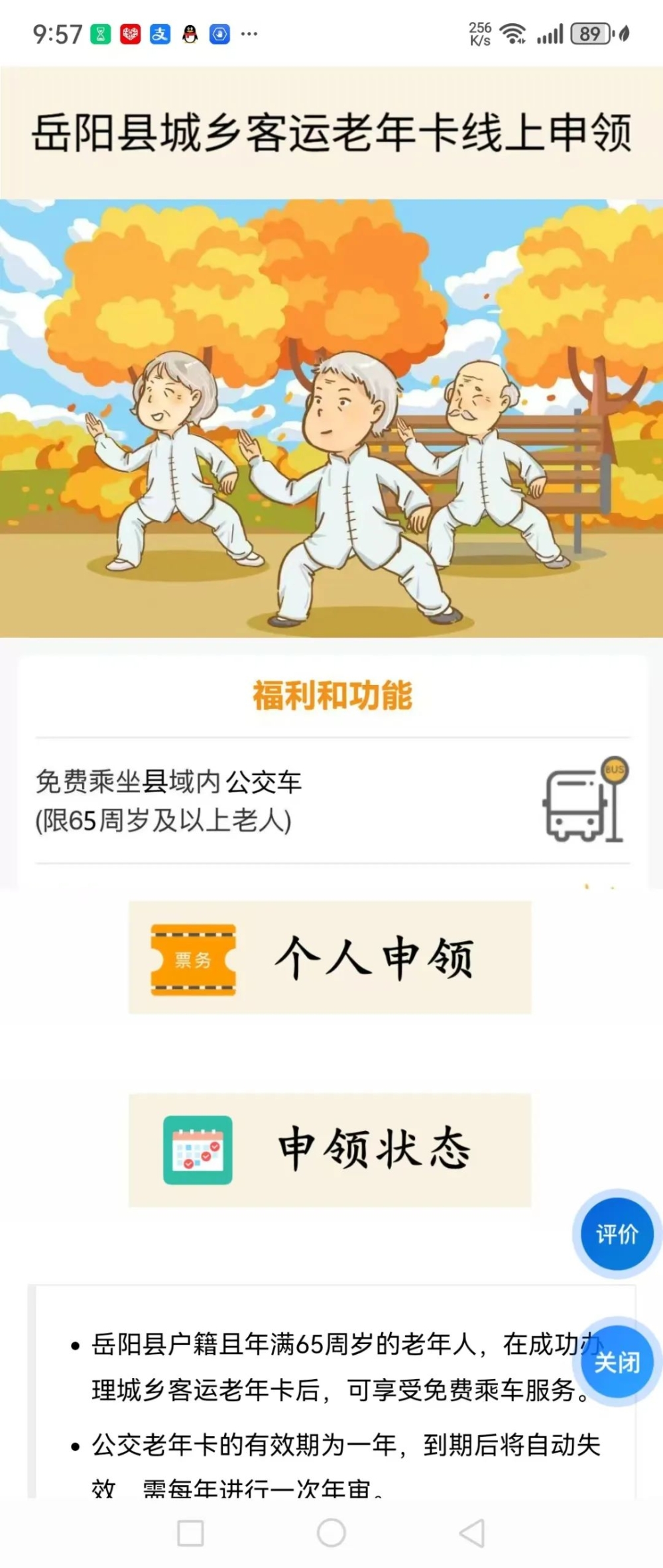 ● 岳阳县户籍且年满65周岁的老年人,在成功办理城乡客运老年卡后,可享受免费乘车服务。