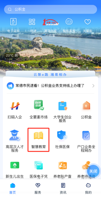 打开“湘易办”APP/支付宝小程序,点击首页金刚区的“智慧教育”专区或搜索“高考成绩查询”服务,输入考生信息,即可查询高考分数。