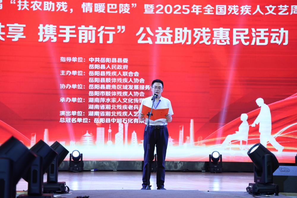 6月28日晚,由岳阳县残联、岳阳县肢残协会联合主办的2025年全国残疾人文化周暨第二届“扶农助残·情暖巴陵”公益助残惠民活动在岳阳县一中体育馆隆重举行。岳阳市残联党组书记周拥军、岳阳县人民政府副县长张文毅出席活动。