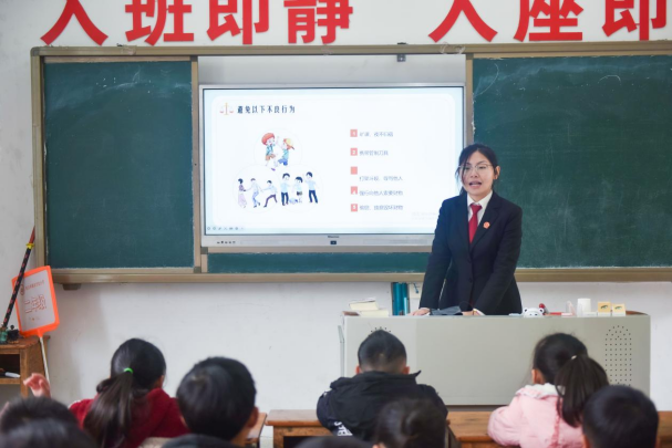 “遇到校园霸凌该怎么办?”“法律赋予了我们哪些权利和义务?”在普法微课堂上,县人民法院的志愿者化身“法治辅导员”,用通俗易懂的语言和生动的案例,为学生们带来了一堂别开生面的法治课。志愿者们深入浅出地讲解了法律底线,引导学生们明辨是非,学会用法律武器保护自己。