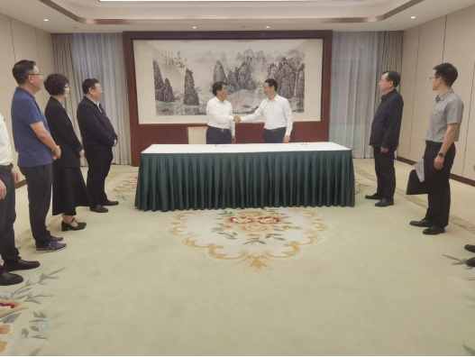 (湖南省配合中央生态环境保护督察协调联络组副总协调人曹普华从中央第五生态环境保护督察组总协调人岳建华手中接过本次环保督察向湖南交办第一批信访举报件。彭雅惠 摄)