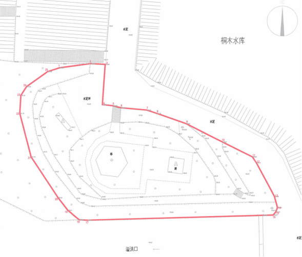 保护范围:东北侧、东侧以桐木水库大坝为界,南侧以桐木水库溢洪道为界,西北侧、西侧以山麓为界。保护范围的面积为1223.9平方米。(详见附件3)
