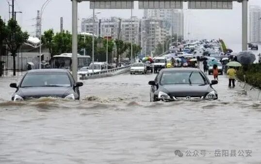 6、雨天行经积水路段时,应跟着前车路线行驶。遇有情况不明或积水较深路段,请停车观察或绕道行驶;必须涉水通过时,要低挡匀速一次性通过,不要中途停车或减速。