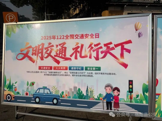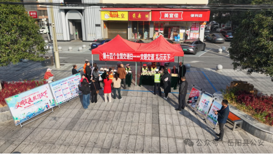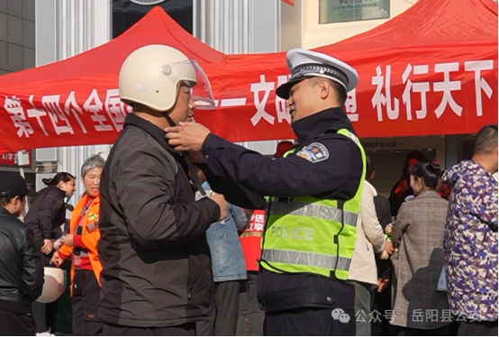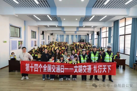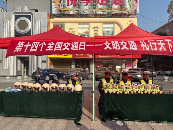 在第十四个“全国交通安全日”到来之际,岳阳县公安局交警大队紧紧围绕“文明交通 礼行天下”主题,精心组织开展一系列形式多样、贴近群众的交通安全宣传活动,让交通安全知识走进街头巷尾、融入校园课堂,营造全社会共同关注交通安全的浓厚氛围。