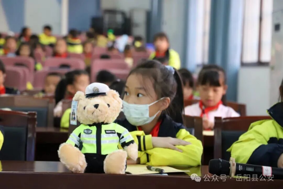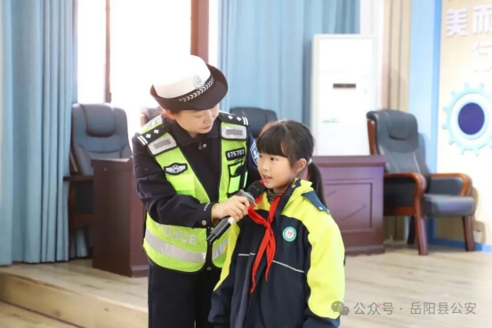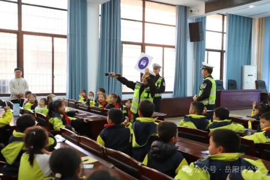 下午,宣传活动走进岳阳县城南小学。活动中,交警现场演示了直行、转弯、停止、减速慢行等交通指挥手势操,一边规范演示一边细致讲解,逐一说明每种手势的核心含义、动作要领及适用场景,帮助师生直观清晰地理解交通指挥信号,提升日常出行中对交通信号的辨识能力。