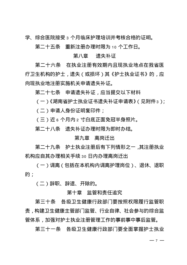 关于印发《湖南省护士执业注册管理实施办法》 的通知
