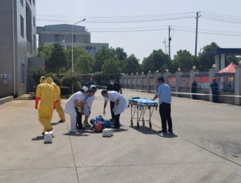 县委常委、副县长贺立,高新园区管委会主任姚正大,县应安委办主任、县应急管理局局长高兴球等领导出席活动。此次活动由岳阳县应急和安全生产委员会主办,岳阳高新技术产业园区、岳阳慧璟新材料有限公司、岳阳市生态环境局岳阳县分局、岳阳县应急管理局等单位承办。本次演练模拟岳阳慧璟新材料有限公司液碱贮存区现场工作员工彭兴望在操作液碱罐底部进行阀门开启作业时,突发阀门底部锈蚀脱落,导致大量碱液泄漏溢出至罐区地面并流入公司雨水沟,可能造成人员伤伤亡和环境污染,公司紧急启动突发环境事件应急预案以及生产安全事故应急预案,进行紧急应急处置。本次演练活动共分为分应急处置组、专家咨询组、应急监测组、事故调查组、医疗救护组、信息报送组、后勤保障组等七个小组。