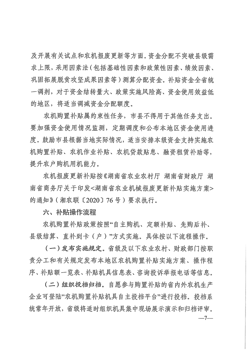 湖南省农业农村厅 湖南省财政厅关于印发《湖南省2021-2023年农业机械购置补贴实施方案》的通知