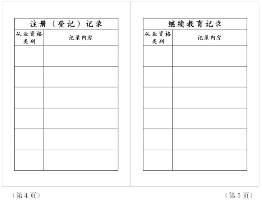 6.第4-8页注册(登记)、继续教育、诚信(信誉)考核、违章和计分等记录对应的从业资格类别栏打印从业资格类别汉字简称,示例:客运驾驶员。