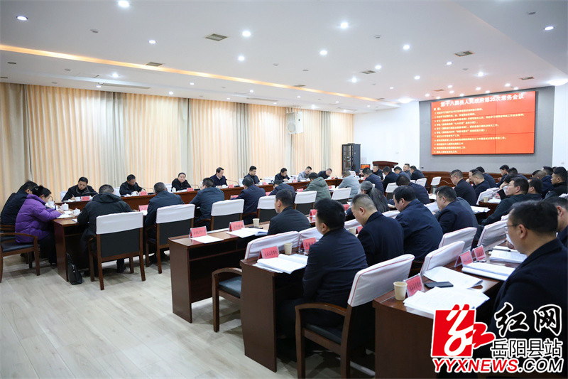 岳阳县融媒体中心2月21日讯(记者 张帆)2月19日,县委副书记、县长吴光文主持召开县政府第35次常务会议,传达学习习近平总书记近期重要讲话和指示精神,以及中央、省、市重要会议精神。