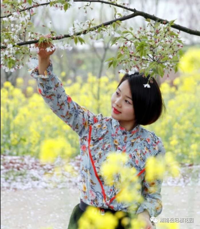还记得,隆冬时节,岳阳下了一场大雪,所有的樱花树都落尽了叶子。3月初,在樱花开放的时候,叶子也开始萌动生长。长形的细叶一片片地从在花团的侧旁和花间长出,翠绿娇嫩,雀雀跃跃的样子,把一个个花枝装点成一个熙熙攘攘热热闹闹的生命世界。