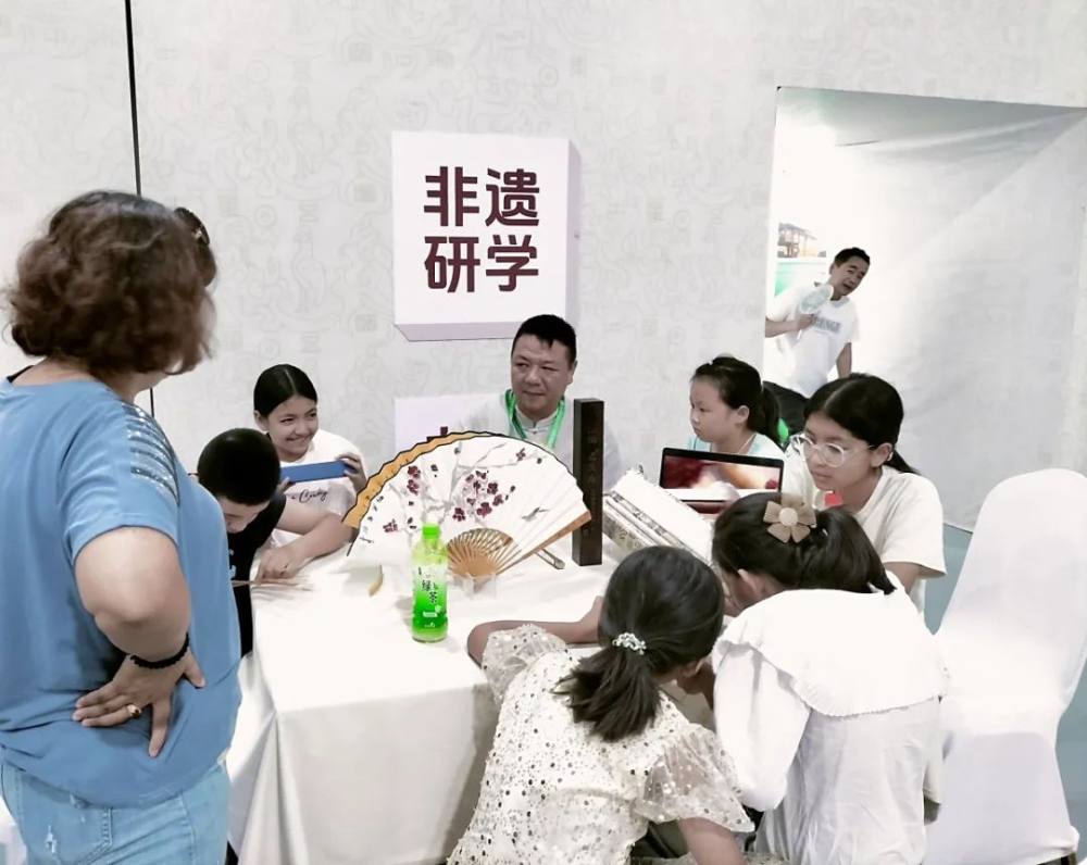 岳州扇制作技艺展台前观者络绎不绝,成为湖南展区备受瞩目的焦点。新疆当地群众和各路游客纷纷驻足,被其独特的制作技艺所吸引。大家或轻抚扇面,细赏扇骨,或参与体验活动,更有许多人在非遗传承人的讲解中,深入了解岳州扇从选材到成型的全流程制作技艺,感受这项技艺中蕴含的匠心与智慧。展区特设的非遗研学体验区吸引了大批青少年,他们在传承人的指导下亲手绘制扇面,沉浸式感受非遗技艺的魅力。