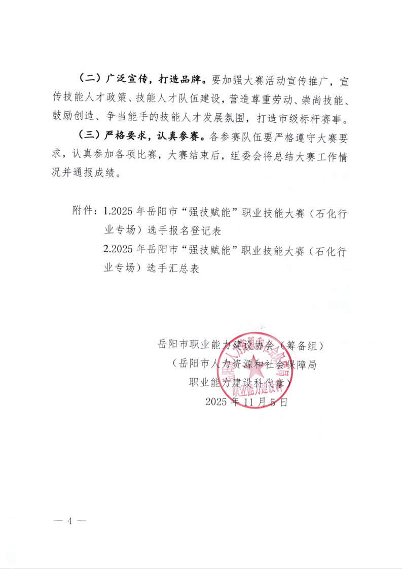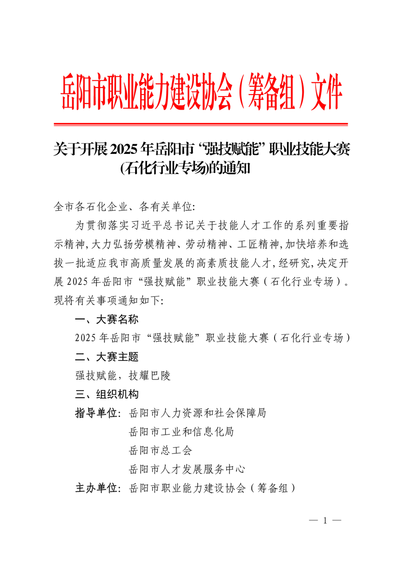 关于开展2025年岳阳市“强技赋能”职业技能大赛(石化行业专场)的通知