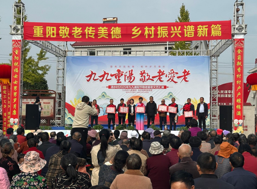 10月29日上午,新墙镇清水村洋溢着浓浓的节日氛围,一场以“敬老爱老”为主题的九九重阳节文艺汇演在此精彩上演,众多村民欢聚一堂,共度这个温馨美好的节日。