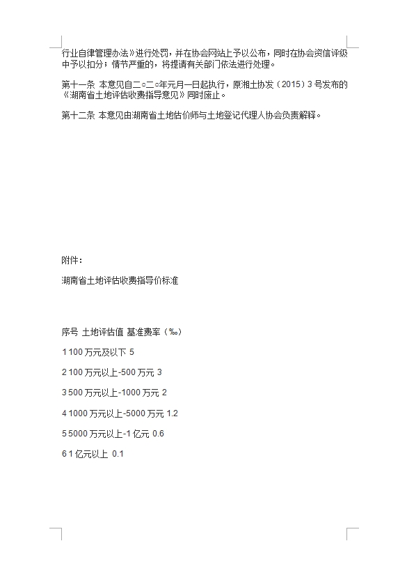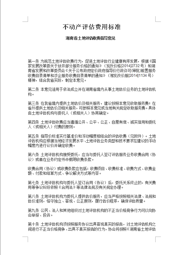 不动产评估费用标准 (湖南省土地评估收费指导意见)