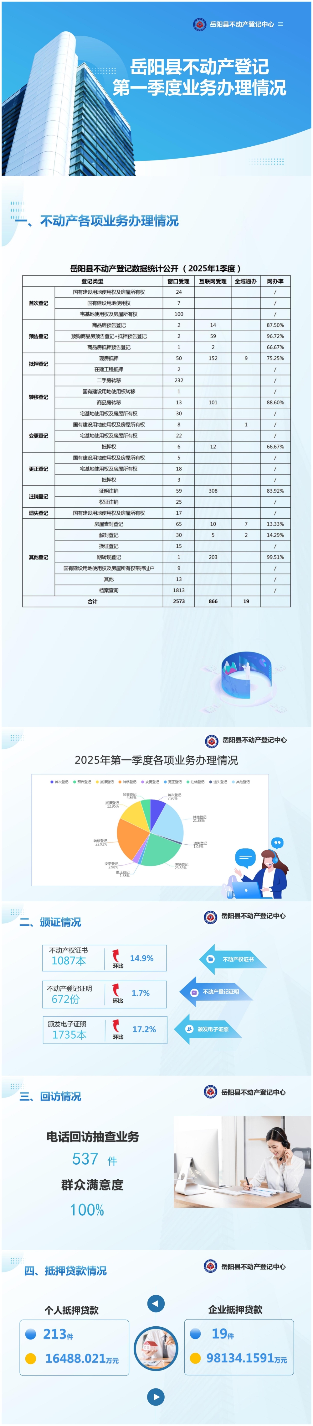 岳阳县不动产登记中心2025年一季度业务办理情况