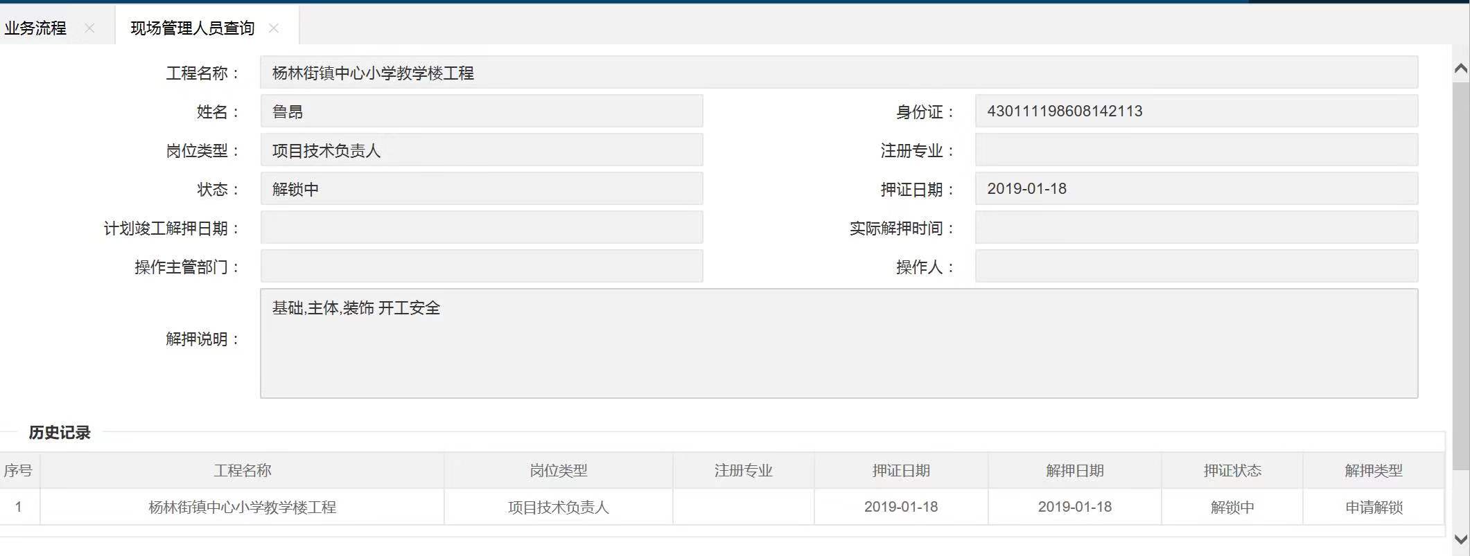 本人2018年底在岳阳县杨林镇小学担任技术负责人,中级职称是锁定的。现项目已竣工5个多月了,已经走了证书撤出程序,湖南建筑市场监管公共服务平台网站却一直还在显示解锁中。不知是何原因。 根据施工企业经办人反映,2019年5月份已进行撤证申请,并多次上门咨询进展情况,但岳阳县安监部门回复说系统故障,不能完成解锁。 且经咨询岳阳市招投标办,2019年5月确实存在监管部门系统问题,但系统早已更新,且已集中进行过岳阳地区的操作培训。 请早日解决此问题为感。 |