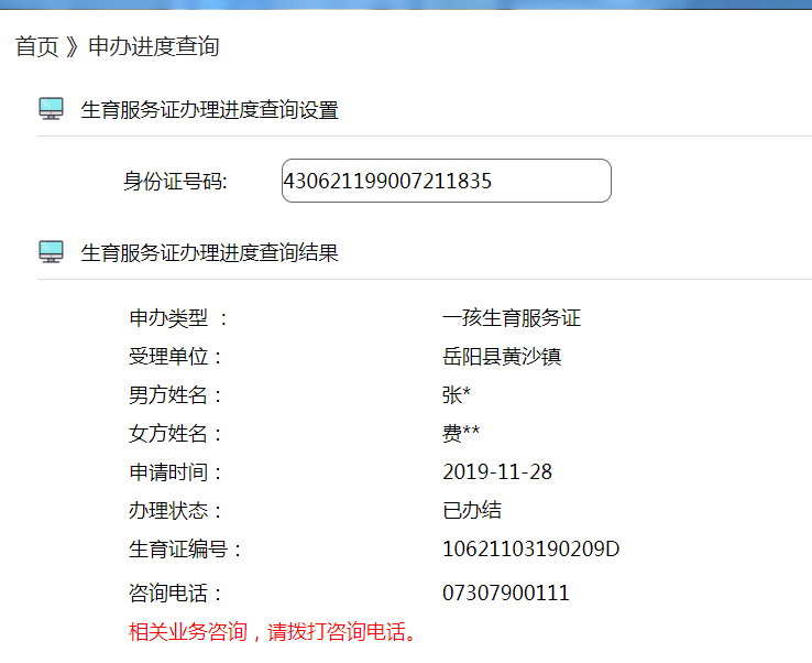 本人于2018年11月28日通过湖南省计划生省网上办证大厅(http://218.76.23.81)提交了全部资料,申请了一孩准生证,几天后 显示装态为已办结,上面有生育证编号和咨询电话 因为之前没有经验,所以不知道还要不要去拿生育证的那个红本,如要拿那个红本去那拿也都不清楚,所以一直拨打上面的咨询电话07307900111,多次拨打一直没法接通,后面于2020年1月3日上午终于打通了这个电话。 电话里的工作人员态度极其恶劣,说要我们拿着全套资料原件去找我们村妇联重新办理,说网上申请只是走形势,她说虽然显示已经办结了,那是因为她不点办结县里就会找他们算他们逾期,网上办的不算数,需要重新办理。 本来政府设立网上办证大厅就是为了方便老百姓,但岳阳县黄沙街政府工作人员如此不作为,如此劳民伤财是为那般? 请市长先生为民做主,严惩相关工作人员,谢谢 本人将持续跟进此事,如果没有满意答复,本人将通过媒体对此事进行暴光。 附件1:一孩准生证显示已办结.png |