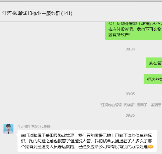 | 回复内容: | 尊敬的网友: 您好!您关于《江河颐璟城小区内流浪狗、不牵狗绳泛滥成灾》的反馈留言收悉,岳阳县人民政府办公室12345公众服务热线管理办公室将来信转交至岳阳县住房和城乡建设局。现就有关情况回复如下: 关于您反映的江河颐璟城小区内流浪狗问题,经了解,小区保安此前曾组织过抓捕行动,但实际效果并不理想。由于流浪狗警惕性较高,一旦发现陌生人靠近,便会迅速逃离,导致抓捕工作难以有效开展。为切实解决这一问题,我单位已明确要求物业公司进一步强化小区日常巡逻工作。在巡逻过程中,一旦发现流浪狗,应立即安排工作人员进行驱离。若驱离工作难以达到预期效果,物业公司需第一时间向公安部门上报,由公安部门依据相关规定和专业手段进行妥善处理,以保障小区居民的人身安全和正常生活秩序。 关于您反映的小区业主遛狗不牵狗绳的问题,物业公司已于11月5日在业主群内开展了文明养犬宣传。同时,我单位要求物业公司制定长期的宣传计划,不定期在业主微信群发布文明养犬的相关知识和提示,持续强化业主的文明养犬意识。此外,物业公司还将积极宣传《岳阳市养犬管理条例》,让业主清楚了解养犬的规范要求和法律责任,引导业主自觉遵守相关规定,做到文明养犬。 我单位工作人员已于2025年11月11日下午15时与您电话联系,并说明相关情况。 感谢您的留言,祝您生活愉快。 岳阳县住房和城乡建设局 2025年11月11日 |