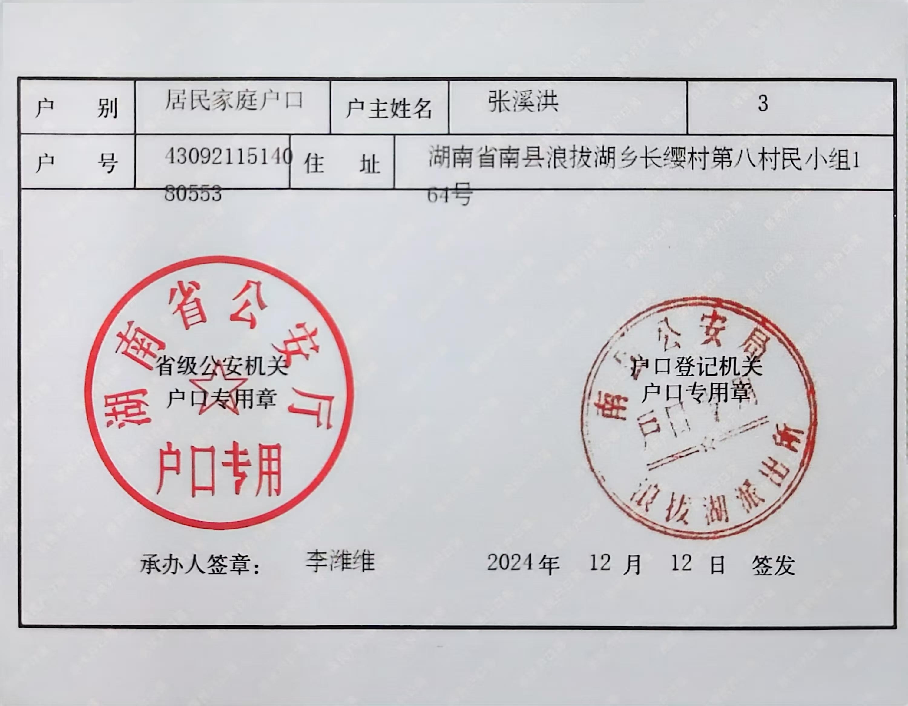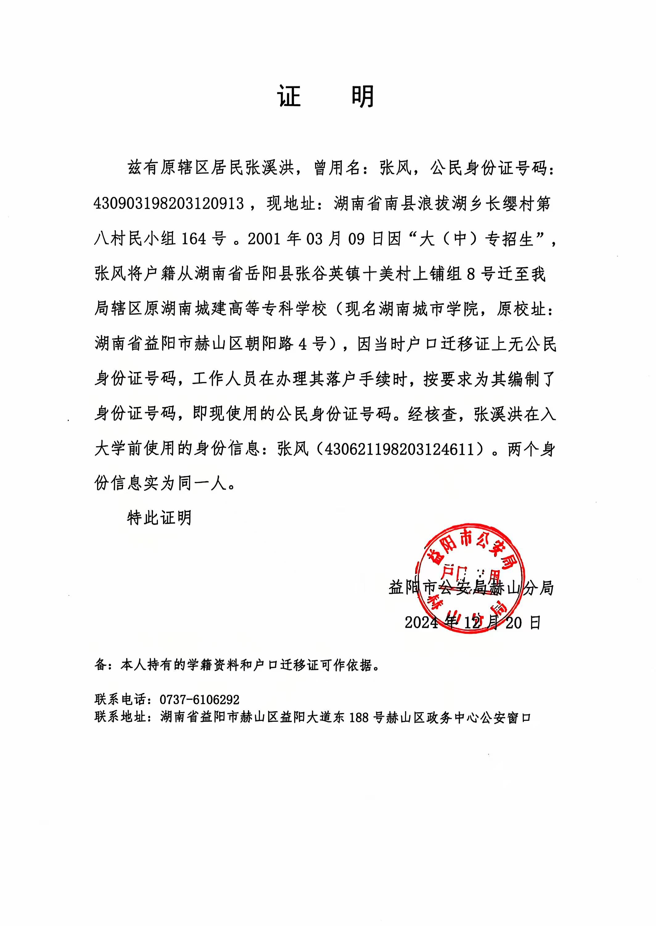 尊敬的吴县长: 您好,我是张溪洪,男,44岁,中共党员,岳阳市农发集团汇康食品公司员工,岳阳市检察院人民监督员,湖南省行政执法监督员。原籍岳阳县张谷英镇十美村上铺组8号,现户籍在益阳市南县浪拔湖乡长缨村8组164号(我在南县也不是城镇户口,当时户口簿上还有“农业户口”的字样,后来全省统一取消了),2025年6月受岳阳市委组织部驻村办选派至汨罗市桃林寺镇玉林村(刘新科书记)开展乡村振兴驻村帮扶工作。 我申请将我和两女儿的户籍,从南县回迁到岳阳县张谷英镇风水村十美片上铺组。线上(政务网、湖南公安服务平台)流程自动退回,原因大致有:无法查到我读过大学(毕业证书身份证号码错误,现身份证下无学历,不符合大学毕业生回原籍),无法证明我爸是我爸(无法凭身份证号码证明两人曾属于同一个户口簿)。特申请转人工审核回迁,前因后果简述如下: 2000年7月我从岳阳县三中复读再次参加高考,报I名信息是:张风,430621198203124611。后被益阳市城建高专的工商管理本科录取(当时还是专科,和株洲工学院联合办学才能招生本科,后升格为本科的湖南城市学院,但2000级工商管理70多学生毕业证全部是株洲工学院签发的)。张谷英派出所2000年9月签发我的户口迁移证,但漏填了我的身份证号码。而学校所在地的益阳市赫山区金银山派出所,在集中办理该批学生集体落户时,也没有联系张谷英派出所、学校或我本人询问为啥没有身份证号码,或问准确我身份证号码是多少,而是直接生成了益阳市赫山区的新身份证号码,即我现在用的430903198203120913。我直到2007年在广东异地更换二代身份证时,才知道身份证号码被改了(当时以为上大学迁移户籍后都要变更身份证地址和号码,不知道身份证号码是不变的,当时也没给我带来明显的影响,所以没有深究),而毕业前,学校因为也不知道我身份证号码被金银山派出所改了,所以还是按照新生录取时岳阳县430621的身份证号码提交了我的毕业信息,所以学信网的登陆、查验都只能用430621198203124611,但4611的身份证号码在公安户籍系统里已经不存在了,而存在的即我现在用的0913的号码又没被录进学信网,且学信网无法变更原登记的身份证号码。 此事,我找益阳市赫山区公安局多次,也找过金银山派出所、湖南城市学院、张谷英派出所(说2000年前后户籍还是手工纸质档案,现在无法查询到我高考前的户籍记录了,当年户籍迁移证上是谁、为啥漏填了我身份证号码也无从查起),最终结果是,益阳市赫山区公安局无法给我恢复岳阳县的原身份证号码,也无法去追究2000年入学时金银山派出所户籍科的失误(说工作人员都不知道换了多少次了),只能给我开个证明,证明“两号同人”---张风430621198203124611和张溪洪43090319820312913,这两个身份信息都是属于我。但线上系统自动按我现用的0913身份证号码无法配备到我的大学信息(学信网的信息是已经废止了的4611身份证号码),所以我无法按照大学毕业回原籍的户籍迁移条件回迁。 而线上系统根据我爸爸430621开头的身份证号码,和我430903开头的身份证号码,也许还有其他算法支持,但总之是直接退回了我的申请,说我和我爸曾经也不属于同一个户口簿。张谷英派出所还提出过查看族谱(族谱上我属于“源”字辈,统一取名,我族谱名字是张源湘),风水村干部说我肯定知道你爸是你爸,你是你爸儿子,但我也没法(出具官方/系统认可的证明),要不你和你爸花三四千块钱去做个亲子鉴定。。。。 我现在提交的附件,如高考报名表、户口迁移证,都能证明我就是当年张谷英镇十美村上铺组8号的家庭成员,也能证明我原身份证号码是430621198203124611,我的学籍和学历报告,以及益阳市赫山区公安局的证明,能配合查验我确实在湖南城市学院读大学、株洲工学院给我发毕业证。我户口簿内页的地址南县浪拔湖乡长缨村8组164号,能证明我不是城镇户口。。。 我的家乡情结很浓,也希望尽力回报家乡,我爸爸现在有宅基地有房子,我自己在岳阳市经开区八字门巴陵东路的全城热恋小区买了房子,我不是图“城镇户口回农村买地建房”,我只想回报家乡、落叶归根,而不是将户口空挂在南县(2008-2017在南县陈克明上班,2017至今在岳阳),也不是不能将户口迁移到岳阳市的全城热恋小区,甚至桃林寺镇(玉林村)都说原意全村签名接收我落户,但我在张谷英镇十美村上铺组土生土长,我希望能回归家乡。 我不知道要怎么办理户籍回迁,走线上流程又走不通,走当地派出所窗口办事员也拿不定可不可以迁,纠结好些年了。特来信劳烦吴书记,恳请您关照、转交有关部门、为我指明户籍回迁之路,游子思乡,感激不尽,谢谢您。 ----求助人:张溪洪,2026.04.07, 18807309187 ----以下是2020年时的县长信箱(县公安局)回复,很官方,但感觉只是为了完成信箱转办单的任务而回复,并没有认真去深度考虑我求助的难点痛点,公安局的答复任务交差了,但求助者的问题依然存在,通篇只是复制标准的政策条文,客客气气又冷冷冰冰。。。。 户口迁回原籍咨询 市/县公安局户籍科室:我想将户口迁回原籍地,不知要如何办理?情况说明:我1982年出生在岳阳县渭洞区十美村(现张谷英镇风水村十美片),2000年上大学将户口迁移去了益阳市赫山区(湖南城市学院),因张谷英派出所办理户籍迁出(高考/录取档案中查看到的)时未填写我身份证号码,而益阳金银山派出所录入户籍时也没有联